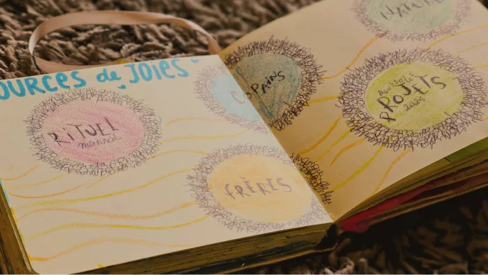 Découvrir la méthode grâce au collage, à l’écriture et au dessin, pour te détendre en couleur.