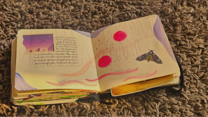 Puisant dans la psychologie, l’art-thérapie et le journal d’artiste, sa force réside dans l’utilisation de trois langages : l’écriture créative, le dessin intuitif et le collage.